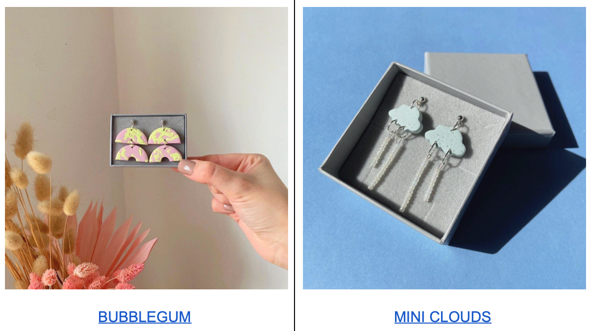 The brand was founded in 2019, and what started as an in-between job search hobby, became later on a full-time job business. The Cloud+Clay jewellery is made with hypoallergenic nickel and lead-free earring backs, or can be custom made with 925 silverbacks.