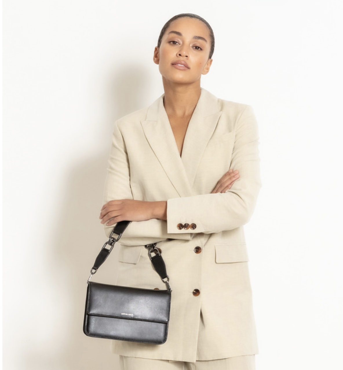 Accessories continue to be essential for styling. We will see colours like brown, burgundy, black, and gray. I think we will see shoulder style, crossbody, or handheld models.