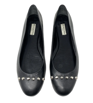 As New BALENCIAGA Black Soft Leather with Silver Studded Ballet Shoes Flats