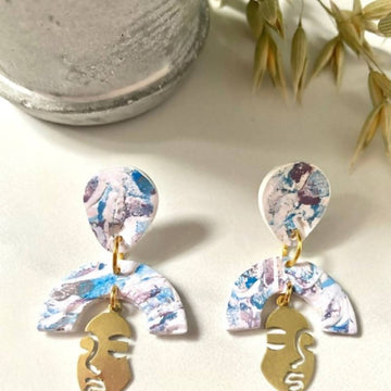 Painted arch abstract face earrings by Shape Lab Jewellery