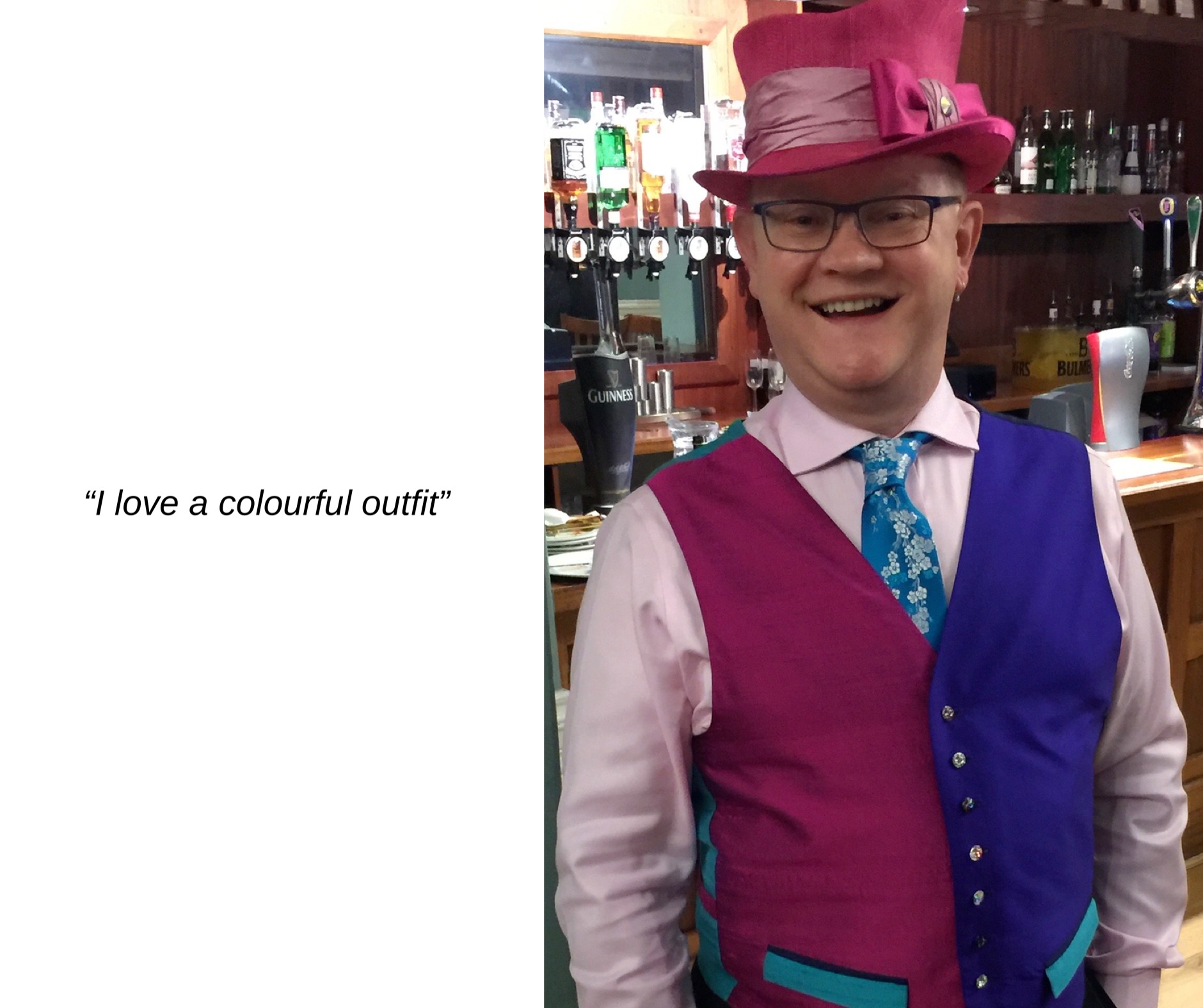 His hobby is Amateur Dramatics - in particular Musical Theatre, and he often gets involved with helping with the costumes or set design as well as performing. When it comes to going to university, his degree was in jewellery design from where he gained many transferrable skills from his time designing wearable objects in precious metals, to now designing and creating 'jewels for the head' which often feature crystals and wires.