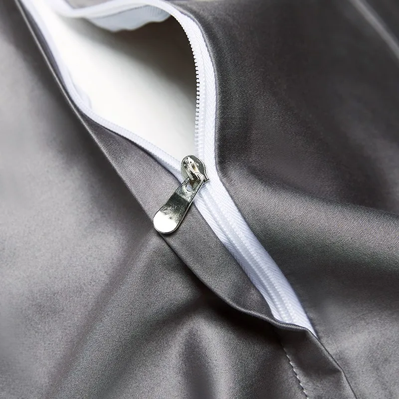 The LINKORI The Royal Deep Grey duvet cover set transforms your bedroom into a modern sanctuary of refined masculinity and timeless elegance. Rich charcoal-grey jacquard fabric glows with subtle platinum metallic threading, creating a sophisticated interplay of depth and brilliance. The intricate Oriental dragon and cloud motifs emerge from the deep grey canvas like ancient wisdom carved in stone, while premium Egyptian cotton delivers unparalleled comfort beneath its commanding presence.
